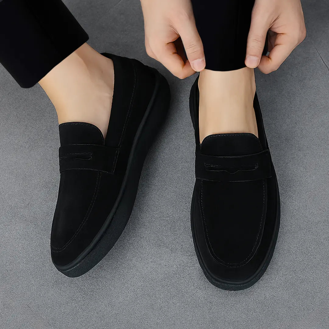Mocassins Noir Daim de Luxe Tres Confortable
